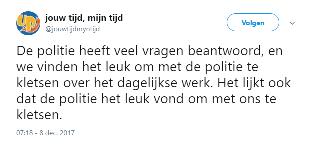 'Het is niet onze bedoeling om mensen bang te maken. Toch zijn ze dat soms wel. Het kan komen doordat ze wel eens opgepakt zijn of misschien door vervelende ervaringen. Wij zijn ook mensen en maken wel eens fouten, dus dat kan effect daarop hebben.'