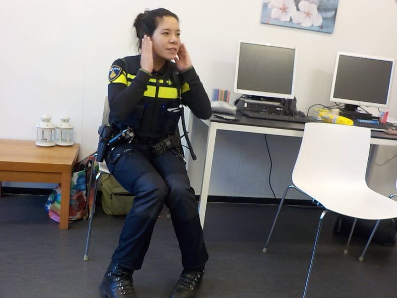 'Ja, gevaarlijke situaties kom je wel tegen als politieagent. Bijvoorbeeld bij een vechtpartij en daarbij ben ik ook wel eens geschopt en geslagen. Dat was heel eng en pijnlijk.'